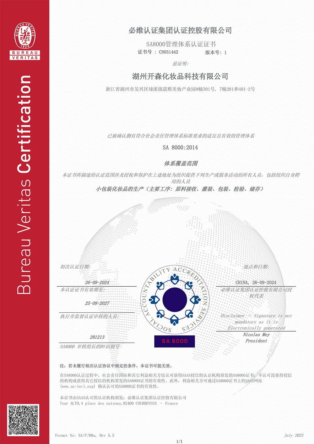 地址:浙江省湖州市吳興區(qū)埭溪鎮(zhèn)晨熙美妝產(chǎn)業(yè)園8幢301號(hào),7幢201和401-2號(hào) 聯(lián)系人:萬里 電話:13773165668 郵箱:li.wan@kaisen-cosmetic.com